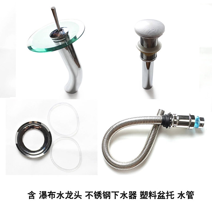 瀑布水龍頭,不銹鋼下水器,塑料盆托,水管