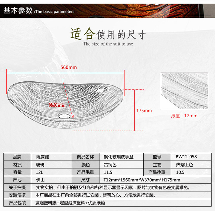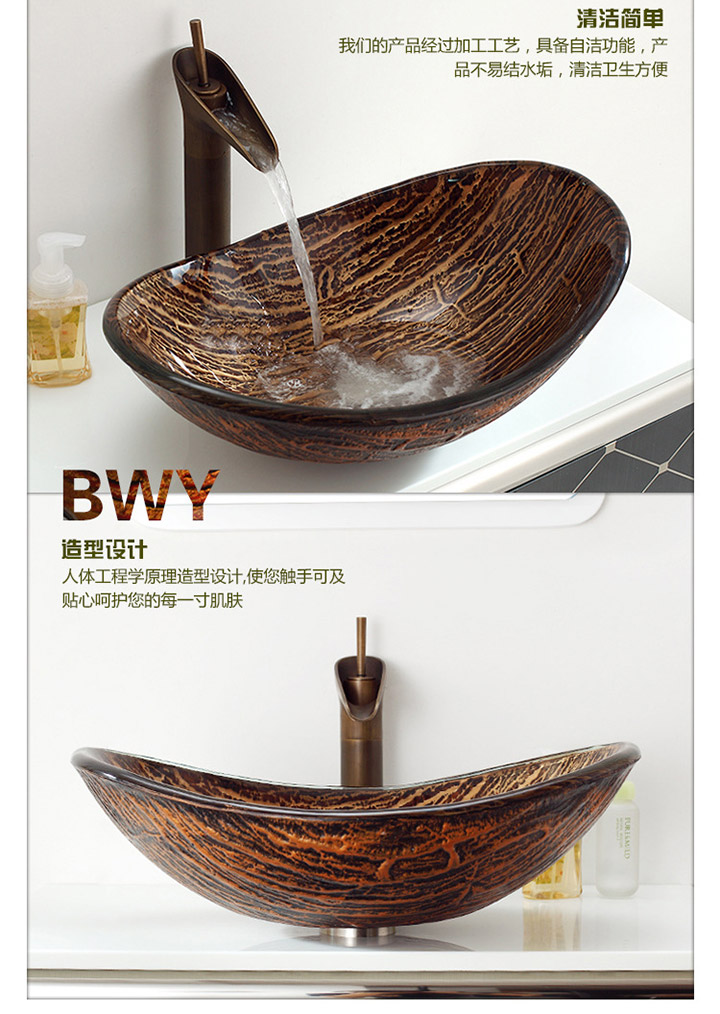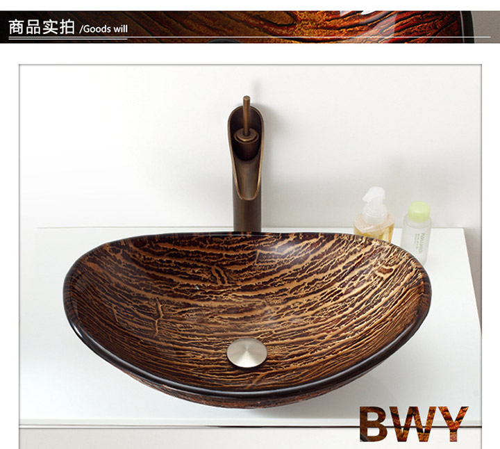鋼化玻璃洗手盆-古銅色-熱熔上色