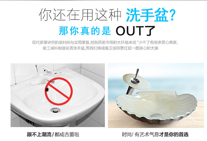 鋼化玻璃洗手盆-扇貝