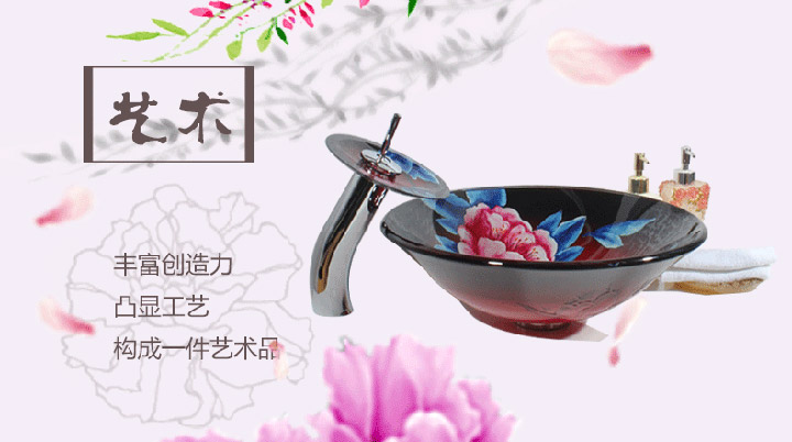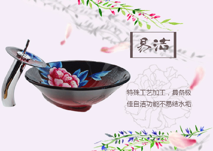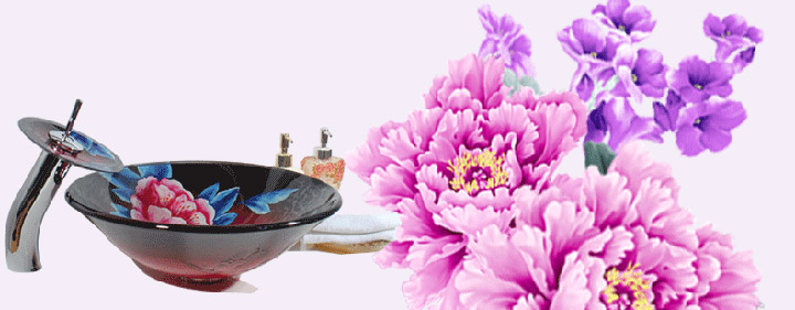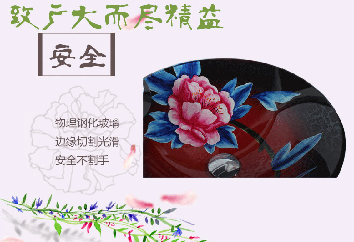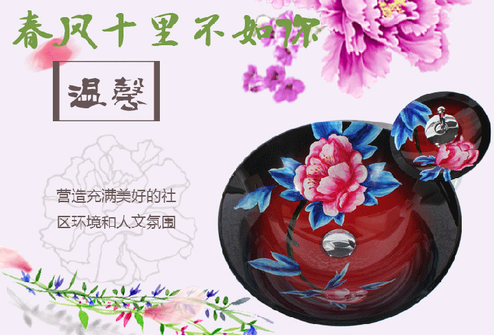 鋼化玻璃洗手盆-紅牡丹